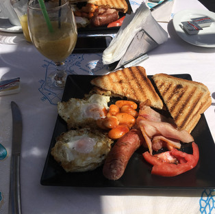 We started our last full day in Greece off with an English breakfast by the beach. (Yes, we had English breakfasts in Greece).